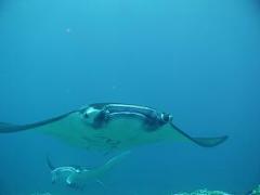 後ろにいたマンタはやや小ぶりで、まだ子供なのかも知れない。