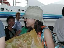 船が桟橋を離れ、石垣港に向かって走り始めると「ちゅらさん」の「エリちゃん」は席に戻って来た。