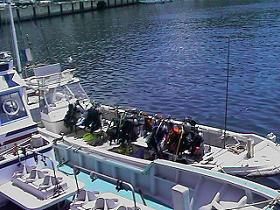 メッシュを車から降ろしたのは良いのだが、ここは初めてなので勝手がわからずウロウロしていると昨日から来ている寺本さんご夫婦が親切に色々と教えてくれる。メッシュバッグから器材を取り出すとウエットとブーツ以外の物をボートに運び、先にセッティングをしてしまう。タンクはスチールの10リッター、はかまを履いていて太(ブット)い。ワイフは今回が50本目のダイビング、BCも下取り交換してから初めて使う。「メッシュは必要ない」と言われて車へ置いてきた。