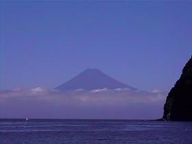 今回は「白崖(シラガケ)」を2本潜った。戸田(へだ)の湾を出て今朝も正面に富士山を見ながらボートは進む。富士は山頂付近が雪におおわれていて子供の頃に書いた「富士の絵」そのままだ。やがていつものように大瀬崎の先端近くまで来て係留。