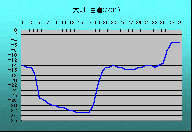 しかし透視度3m以下の濁りの中でなかなか潜降ロープが見つからない。表層はかなりの流れが有ったから、このままボートから離れて上がったらボートへ戻れない。-14mあたりをジグザグに往復してようやく潜降ロープが見つかった。残圧が厳しかったので潜降ロープ沿いに直ちに浮上。ダイコンを見ながら浮上したが安全停止は出なかったので、そのまま水面へ上がってしまった。