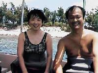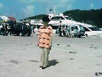 天気は朝から快晴、気温はとっくに30℃を超えているのだろう。我々が乗った座間味への船は「クイーンざまみ」というスマートな恰好の高速艇だ。那覇の泊港から約1時間の船旅で座間味港に到着。今朝ホテルから、3日間お世話になるダイビングサービスに電話を入れておいたので港に迎えが来てくれていた。船から降りた我々を出迎えてくれたのは広島から来ているという加藤クン。見た所まだ23,4といった所だろうか。同じサービスを使うというもう一組の家族連れと一緒に早速ショップまで連れて行かれた。