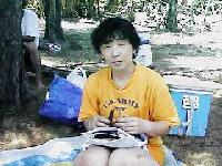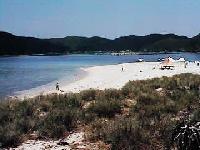 上陸するとオーナーから教わった木陰へとまっしぐらに急いだ。とにかく日陰に入らないと全身やけどをしてしまいそうな太陽の光なのだ。オーナーから教わった木陰は真っ白な砂浜から急斜面を少し上がった所にあった。とりあえず荷物を降ろしホッとする。上陸したのは若者4人組と、北海道から来たと言う昨日ガイドを一人占めした若い夫婦、二人とも学校の先生だそうだ。それに昨日東京から着いて我々と同じ民宿に泊まっているチョット年の行ったオジサン、それと我々夫婦の計9人。