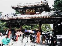 ワイフがその時に訪れた「守礼の門」へもう一度行きたいと言うので付きあうことにした。タクシーで「守礼の門」へ行ってみると(何だかにぎやかだなァ…、こんなに土産物屋があったっけ)という感じ。そして入場料お一人さま800円を支払って最近復元したと言う「首里城」へと足を踏み入れた。ここは何年か前にNHKの大河ドラマ(「琉球の風」だったかナ?)で使われただけあってかなり忠実に再建されているようだ。建物の中は展示室になっていて、琉球王朝の頃の絵やら、古い写真やら、骨董やらが展示されていた。