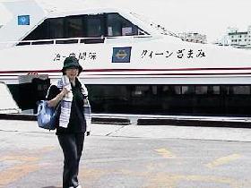 座間味へ渡る船は「クイーン座間味」という高速艇。那覇の泊港と座間味の間を1時間少しで結んでいる。が、本数が少ない。1日2便しか無い。今回のツアーに申し込んだ時に、飛行機が朝一番だったので、てっきり昼頃には座間味へ入れて午後から1本追加ダイビングができるかも、などと甘い考えでいたのだが、横浜を立つ前にインターネットで「クイーン座間味」の時刻表を調べて愕然とした。9:00と15:00の2便しか無いのだ。この時点で那覇での「ヒマつぶし方法」に頭を使わなければならなくなった。