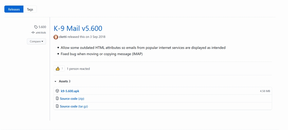 ダウンロード https://github.com/k9mail/k-9/releases/tag/5.600 「k9-5.600.apk」をダウンロードする。 ![]() もしリンクが切れていたら Android14対応は |