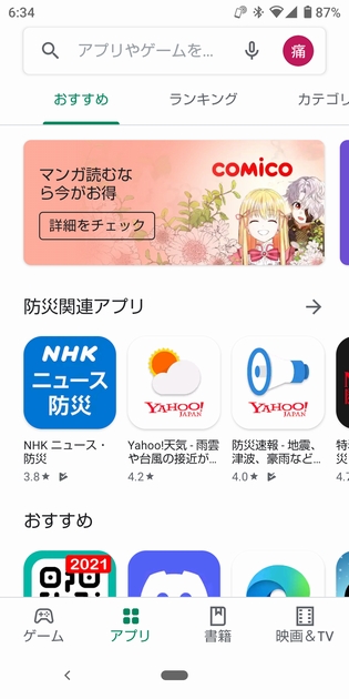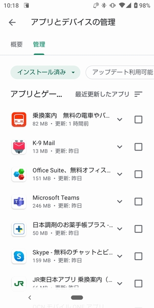■Playストアのトップ画面右上の[アカウントアイコン]をタップ 「アプリとデバイスの管理」で「管理」をタップ、K-9 mailをさがす