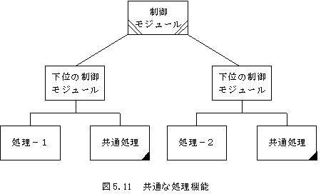 2.構造化の基準 topへ戻る 構造化定理(どんな論理でも順次・選択・繰返しの3つの基本的パターンを用いれば記述できる)を適用してプログラミングすれば、プログラムを難解にしていたgoto命令の使用を避けられる。この構造化プログラミング技法に基づき、プログラム全体の処理の流れを、原則として初期処理、主処理(繰返し処理)、終了処理の3つの部分に分ける。 (1)初期処理部 ・繰返し処理に必要とする入出力ファイルのopen ・実行に必要なパラメータ、コントロールメッセージなどのセット ・カウンタ、レジスタなどの初期値のセット ・繰返し処理に必要とする各ファイルからの第1レコードの読込み ・など (2)主処理部 ・プログラムにおける主たる処理を繰り返し行う部分 ・処理が前後半に分かれる場合は、主処理もそれぞれに分かれる (3)終了処理 ・総計の出力処理 ・総入出力件数の表示 ・使用したファイルのclose ・など 次に各部分で出現する処理機能モジュールをくくり出して、共通処理部とする。 共通処理部に配列する処理機能モジュールは、実行順に無関係で、かつ、そのモジュールを呼び出す制御論理モジュールとの接続関係は図示されなくてよいが、それぞれの処理機能モジュールとのインターフェースのために使用するコモンエリアなどの条件を注記しておくとよい。 |